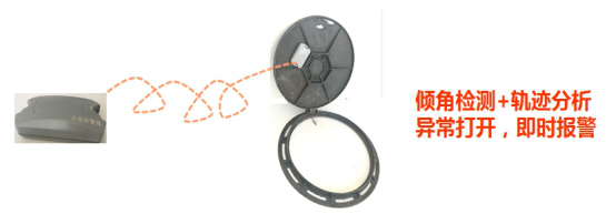 井盖非法开启或损坏后能启动报警功能。井盖监控器如图二所示的井盖监控器。