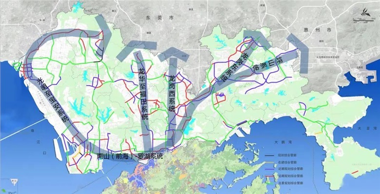 远期:“系统建设、形成规模”。“大系统小集中”格局,全市共规划综合管廊136条,共520公里。大系统:光明至宝安系统、龙华至福田系统、龙岗坪山系统、南山(前海)罗湖系统小集中:大空港新城、光明新城、深圳北商务区、阿波罗未来产业城、坪地国际低碳城等。