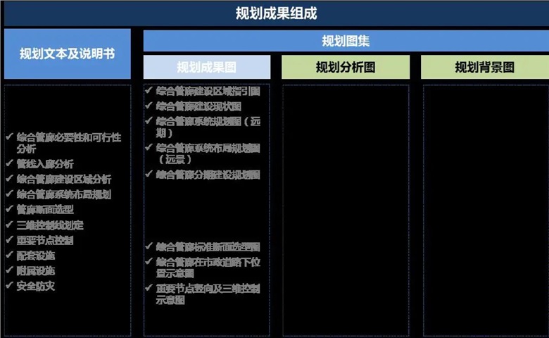 以《城市地下综合管廊工程规划编制指引》为基础,创新提出“一面、两线、三点”规划思路,为综合管廊规划编制提供了新的思路。