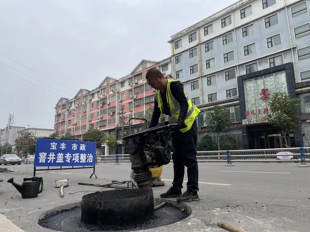 “以后连井盖都会报警了!”10月26日,在宝丰县君文路上,市政养护工人用夯实机一点点压实、找平窨井盖井口面层沥青,为该路段安装上新型“五防”井盖。