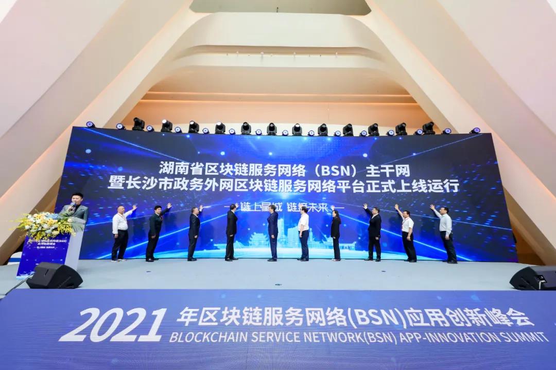 ▲ 5月28日,2021年区块链服务网络(BSN)应用创新峰会召开,长沙市政务外网区块链服务网络平台正式上线运行。(供图:周妍)